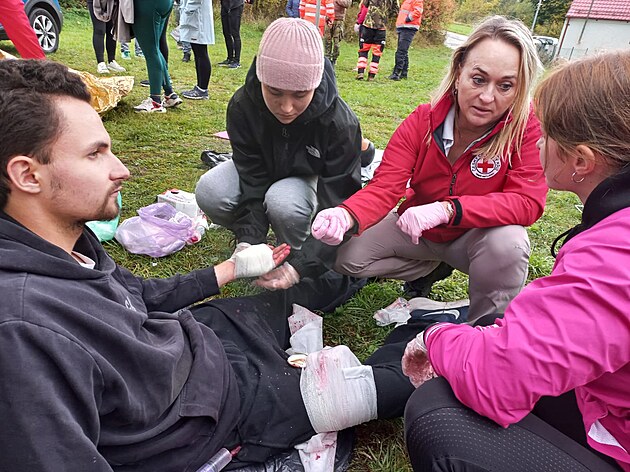 Organizátoři připravili pro vysokoškoláky v Boleticích několik stanovišť. Na tomto trénovali první pomoc při dopravní nehodě. Pak jim zkušení záchranáři vysvětlovali, co dělali správně a kde dělali chyby.