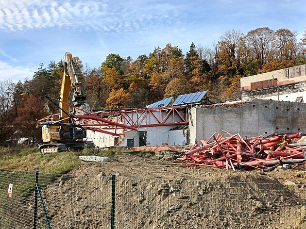 V Českém Krumlově začala demolice shořelého plaveckého bazénu. (21. října 2025)