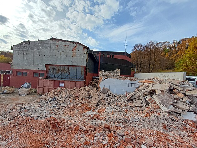 V Českém Krumlově začala demolice shořelého plaveckého bazénu. (21. října 2025)