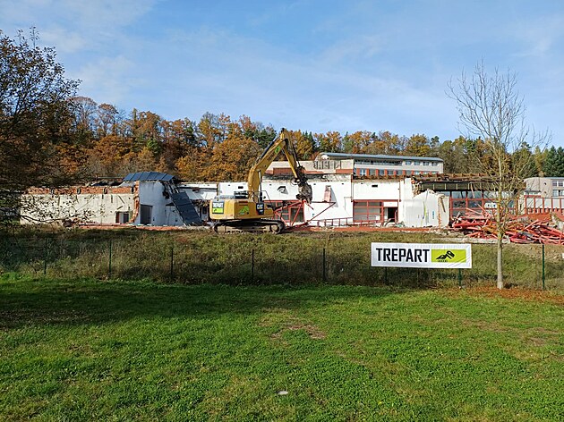 V Českém Krumlově začala demolice shořelého plaveckého bazénu. (21. října 2025)