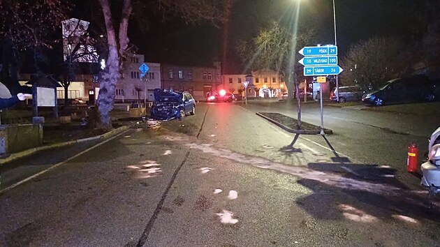 Opilý řidič havaroval na návsi v Bernarticích. V autě s ním cestovaly dvě děti.