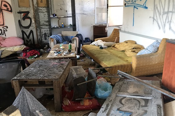 Na zemi se povalují špinavé spací pytle, lahve od alkoholu i plastová popelnice. Ve vzduchu je cítit štiplavý zápach a místnost je plná much. „Sem jezdíme docela často,“ rozhlíží se strážník po opuštěném objektu na okraji českobudějovického vlakového nádraží.