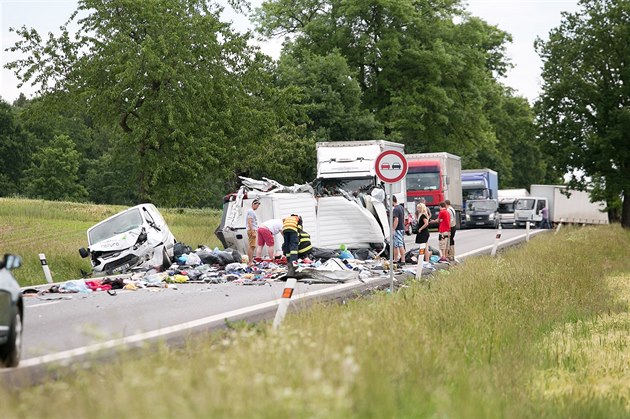 Na hlavním tahu Budějovice - Písek se srazily dvě dodávky a autobus.