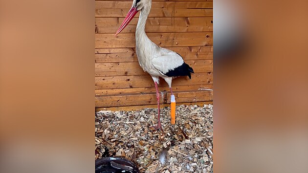 Čáp se chytil u rybníka do želez. Museli mu amputovat nohu
