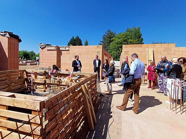 Nový domov se zvláštním režimem už má obrysy prvního patra. Hotová stavba bude mít patra dvě. Hosty provedl stavbou architekt Jan Klein (vlevo).