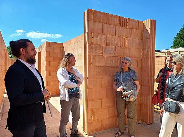 Hosty provedl stavbou architekt Jan Klein (vlevo). Zmínil, že domov bude rozdělený na dvě bytové jednotky pro 4 klienty a dvě pak pro 5 klientů.