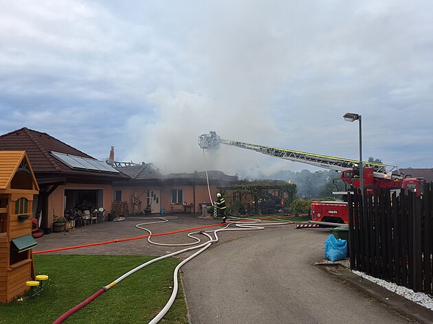 V Černém Dubu shořel rodinný dům. Oheň likvidovaly profesionální i dobrovolné jednotky hasičů.
