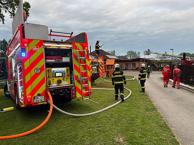 V Černém Dubu shořel rodinný dům. Oheň likvidovaly profesionální i dobrovolné jednotky hasičů.