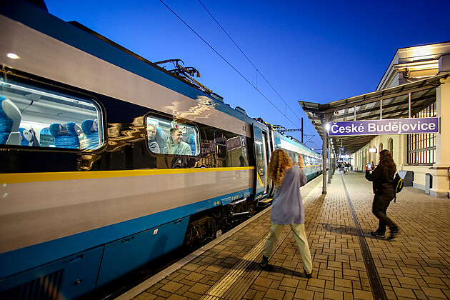 Pendolino odjíždí z Českých Budějovic do Prahy. (1. září 2025)