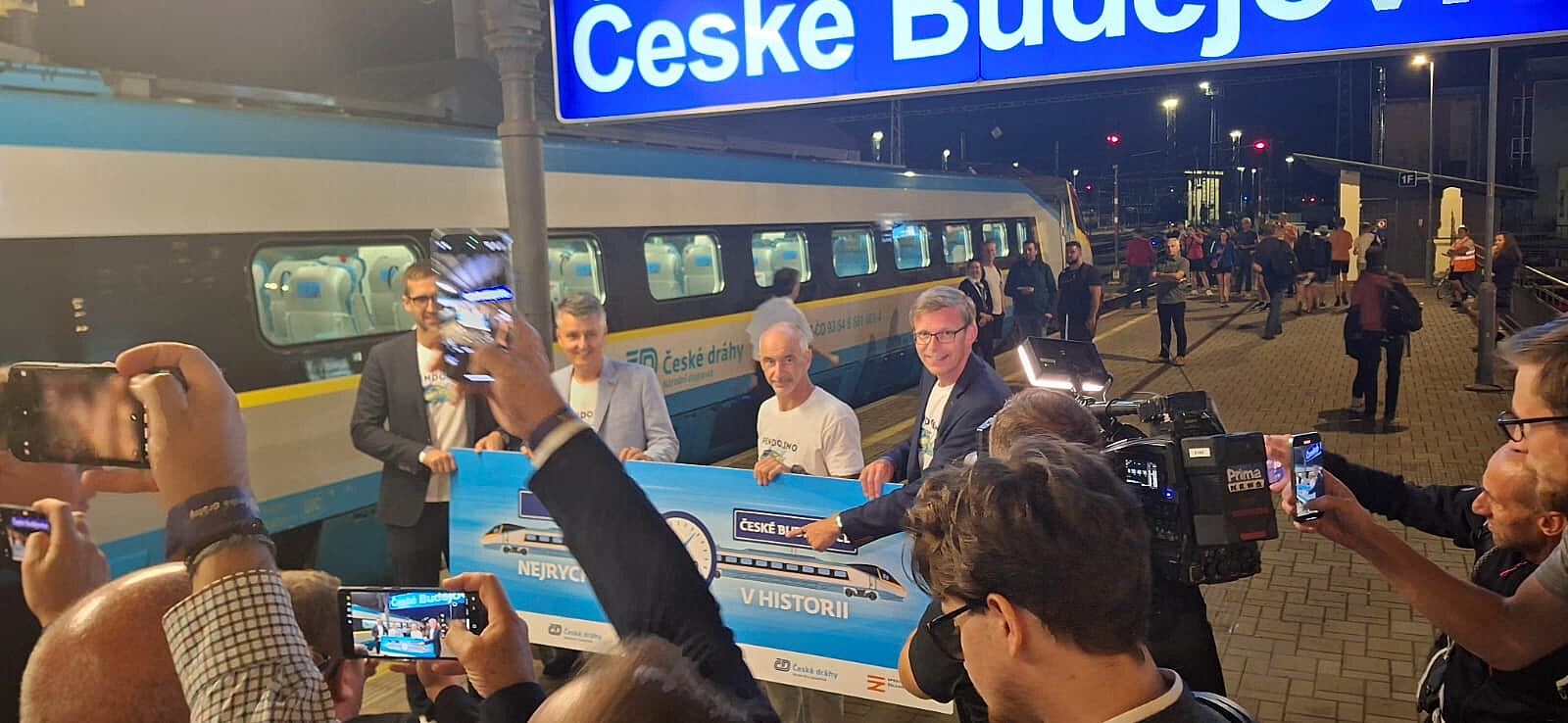 První Pendolino přijelo v neděli 31. srpna večer z Prahy do Českých Budějovic. Seděli v něm i hejtman Martin Kuba a ministr dopravy Martin Kupka.