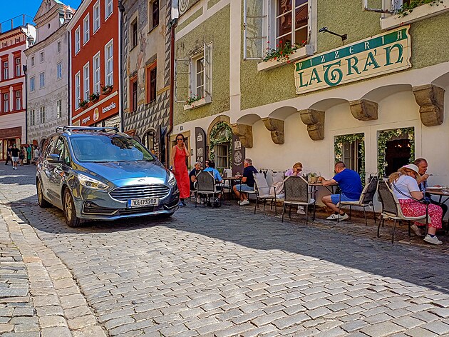 Podobných situací v historických uličkách Krumlova má být stále méně. Aut je prostě příliš, nyní musíte mít pro vjezd do centra speciální povolení.