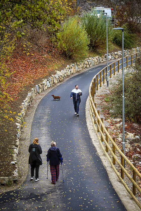 Nový 720 metrový úsek Vltavské cyklostezky v Českém Krumlově vede od Porákova mostu po křižovatku U Trojice. (3. listopadu 2025)
