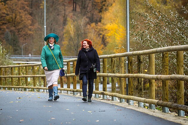 Nový 720 metrový úsek Vltavské cyklostezky v Českém Krumlově vede od Porákova mostu po křižovatku U Trojice. (3. listopadu 2025)