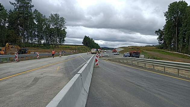 V pátek dopoledne se u Dolního Dvořiště připravovalo vše pro to, aby se mohla část D3 otevřít pro auta. (29. srpna 2025)