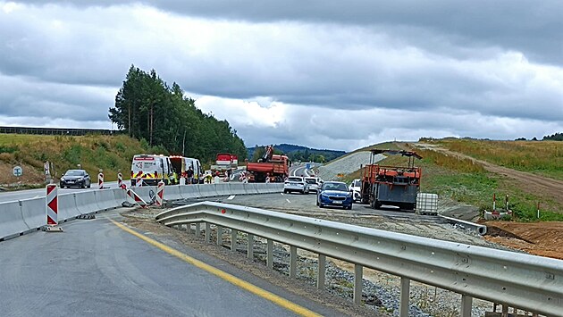 V pátek dopoledne se u Dolního Dvořiště připravovalo vše pro to, aby se mohla část D3 otevřít pro auta. (29. srpna 2025)