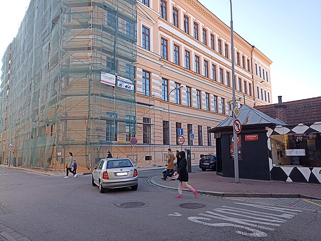 U školy chybí přechod. Chodci včetně dětí musí přebíhat silnici s rušným provozem.