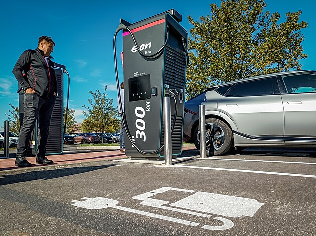 Společnost E.ON vybudovala v Českých Budějovicích u nákupního centra na okraji města největší dobíjecí stanici pro elektromobily.