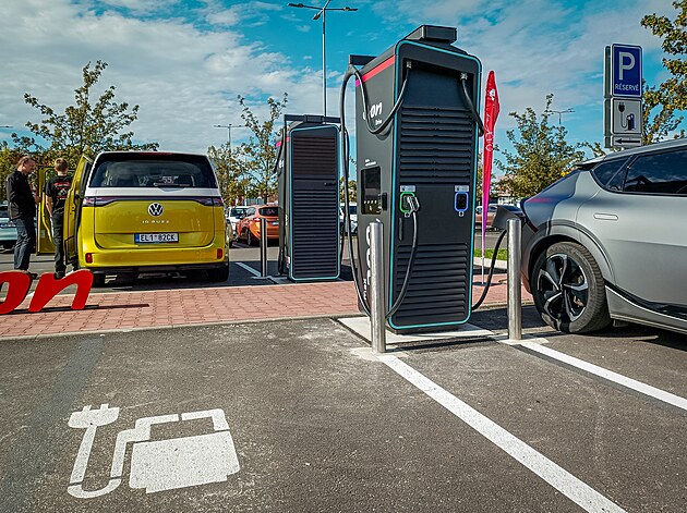 Dobíjecí stanice stojí u silnice, kudy zejména v létě projíždí tisíce lidí do dovolenkových destinací v jižních zemích.