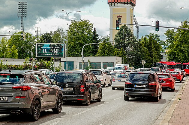 Křižovatka Mánesovy a B. Němcové v Českých Budějovicích