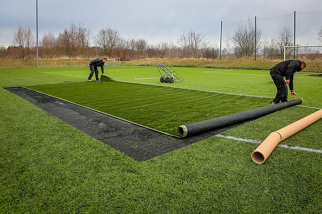V tréninkovém areálu Složiště vyměňuje českobudějovické Dynamo část umělého povrchu na jednom z hřišť.