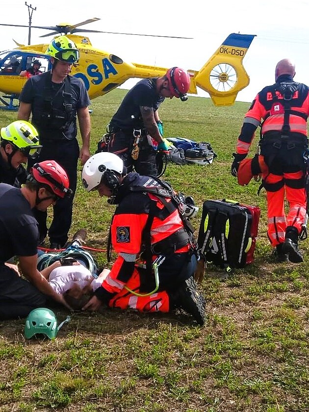 Na louce mladou ženu lékaři stabilizovali a pak ji vrtulník transportoval do českobudějovické nemocnice.