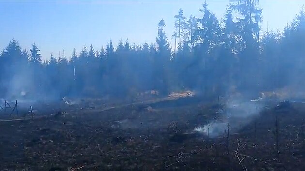 Hasiči likvidují požár lesa u Budíškovic na Jindřichohradecku