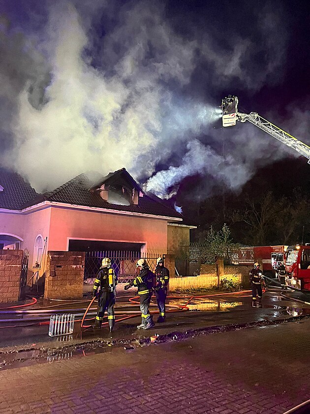 Hasiči v noci na středu likvidovali požár domu v Českých Budějovicích. (2. října 2024)