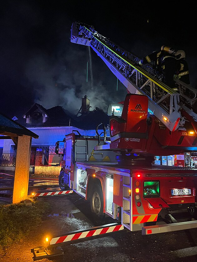 Hasiči v noci na středu likvidovali požár domu v Českých Budějovicích. (2. října 2024)
