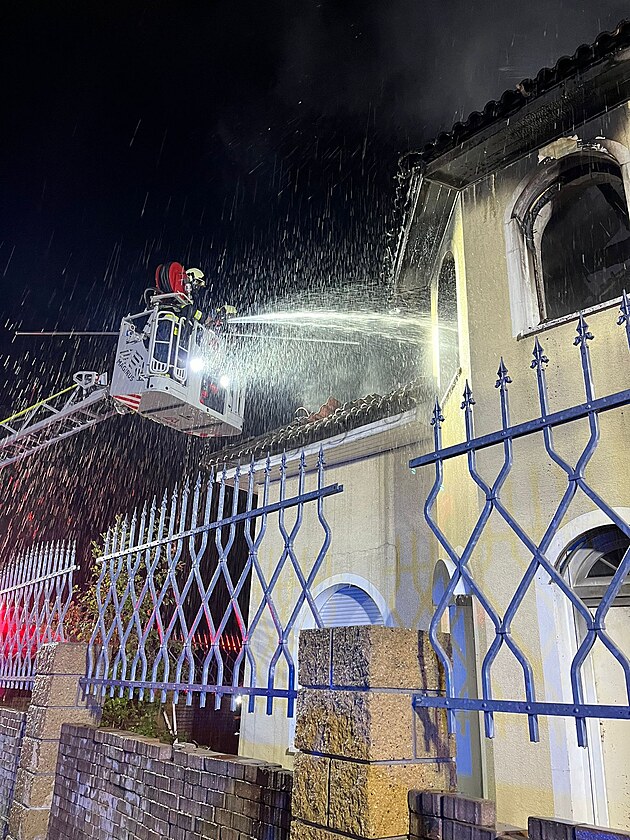 Hasiči v noci na středu likvidovali požár domu v Českých Budějovicích. (2. října 2024)