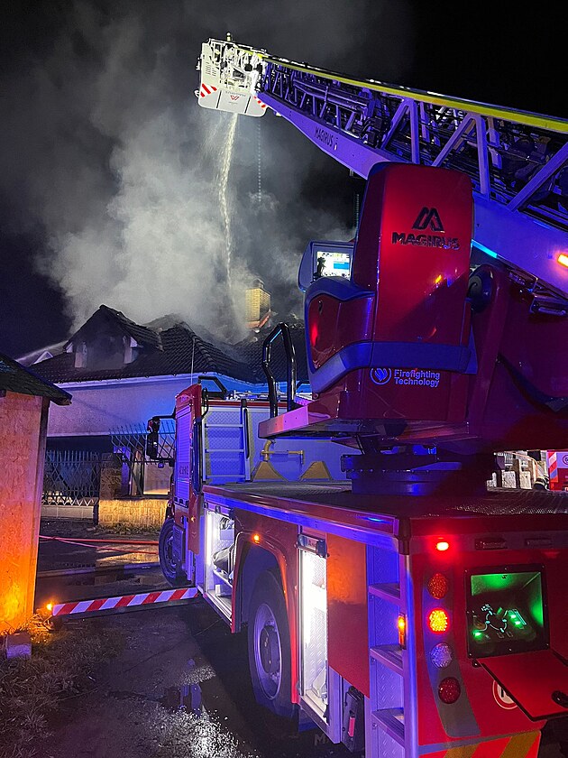 Hasiči v noci na středu likvidovali požár domu v Českých Budějovicích. (2. října 2024)
