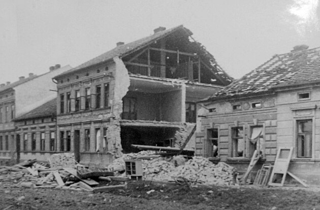 Na snímku z března roku 1945 je dnešní ulice J. Boreckého v Suchém Vrbném.
