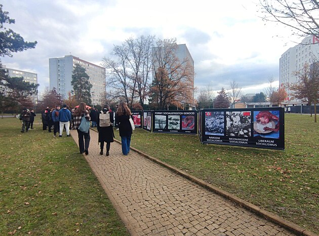 Spolek v kampusu univerzity postavil petiční stánek a bannery s fotografiemi z koncentračních táborů, s masovými hroby nebo zraněnými dětmi.