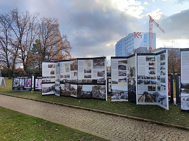 Spolek v kampusu univerzity postavil petiční stánek a bannery s fotografiemi z koncentračních táborů, s masovými hroby nebo zraněnými dětmi. Studenti je pak překryli panely o první světové válce.