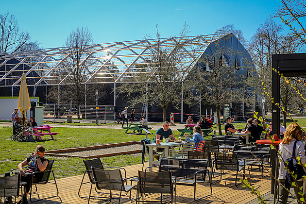 Na Sokolském ostrově vzniká fanzona. Snímek je v pátečního odpoledne.
