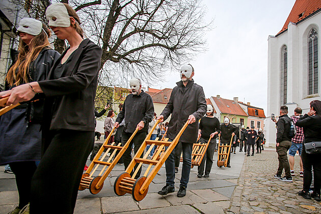 Do průvodu může kdokoliv, stačí přijít v černém oblečení. Hrkačky i masky dostanete...