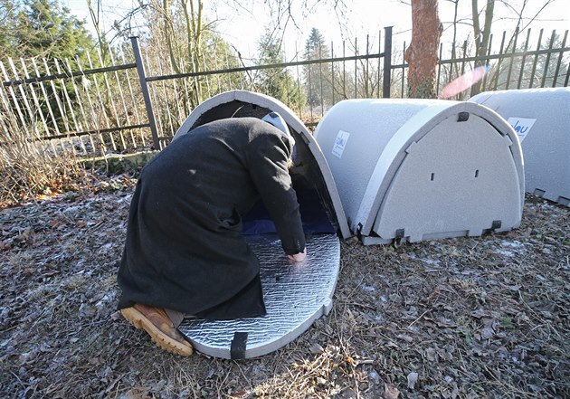 Možnost přespání na krytém lůžku využívá i pětačtyřicetiletý bezdomovec Richard. „Extra velké teplo v iglú není, ale půjčí nám deky a spacák, takže to jde,“ vypráví.