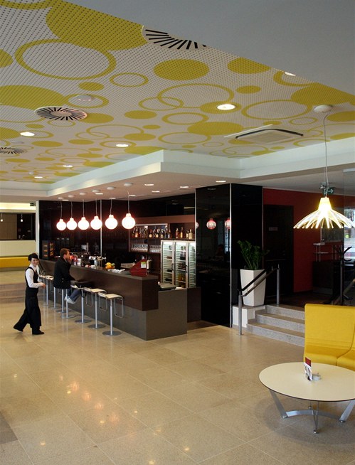 České Budějovice, 1.4.2012, hotel, rekonstrukce, otevření, bývalý Gomel, Clarion Congress Hotel FOTO: Po čtrnáctiměsíční rekonstrukci byl znovu uveden do provozu bývalý českobudějovický hotel Gomel. Změnil nejenom svou podobu, ale také název na Clarion Congress Hotel. Na snímku je Lobby bar