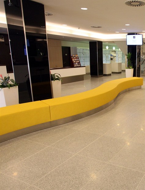 České Budějovice, 1.4.2012, hotel, rekonstrukce, otevření, bývalý Gomel, Clarion Congress Hotel FOTO: Po čtrnáctiměsíční rekonstrukci byl znovu uveden do provozu bývalý českobudějovický hotel Gomel. Změnil nejenom svou podobu, ale také název na Clarion Congress Hotel. Na snímku je vstupní hala s recepcí