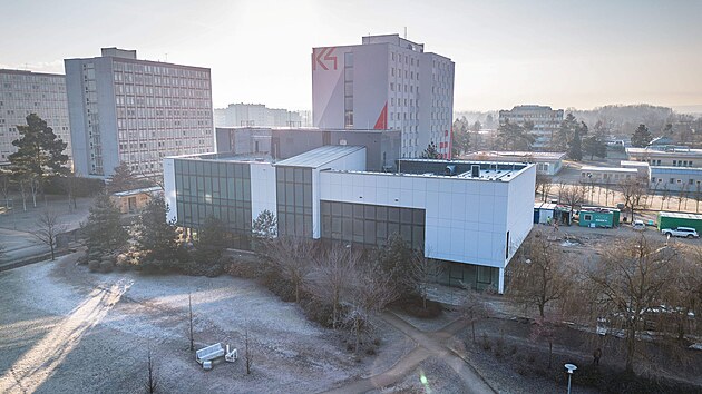 Letos na jaře dokončí stavaři práce na univerzitní aule, která se opravuje od roku 2022. Stojí v kampusu při Branišovské ulici.