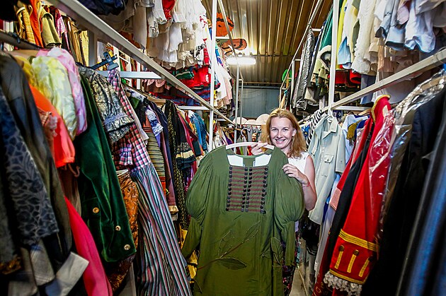 Vedoucí půjčovny Pavlína Šumpichová ukazuje jeden z kostýmů.