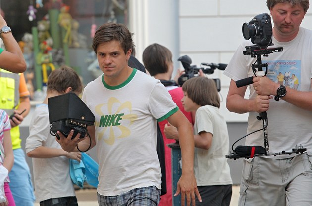 Herec Jiří Mádl natáčí s malým štábem v uliciích Českých Budějovic film Pojedeme k moři. Tentokrát je jeho režisérem.