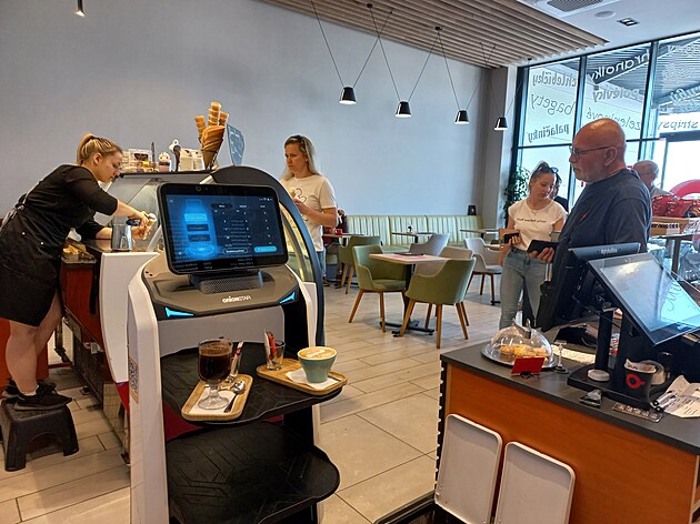 V písecké kavárně si hosté chválí netradičního pomocníka. Jídlo a pití tam rozváží robot.