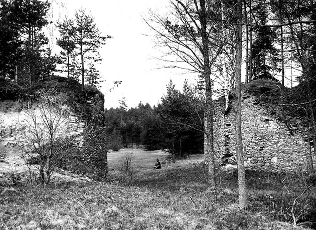 Opěry dřevěného mostu u Horního Dvořiště na snímku z roku 1925, kdy se poprvé mapovaly pozůstatky koněspřežky. Archiv Iva Hajna GPS: 48.6272692N, 14.4447844E