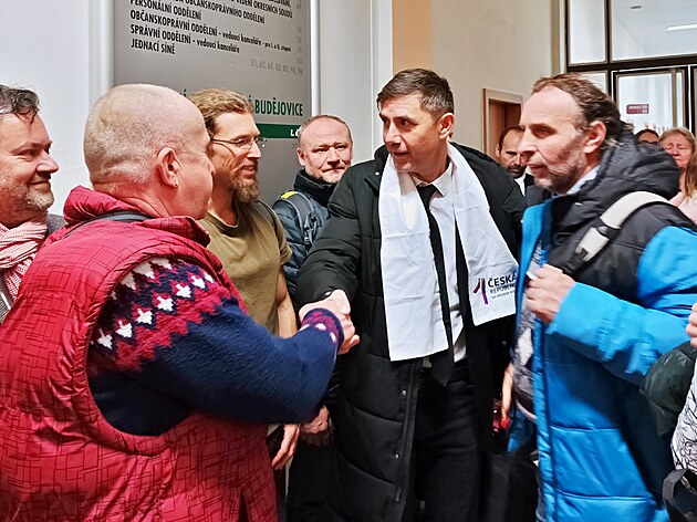Ve středu projednával krajský soud v Českých Budějovicích případ ženy dezinformátora Ladislava Vrabela (na snímku) Bojany Vurdelji. K soudu je přišly podpořit desítky obdivovatelů. (8. ledna 2025)