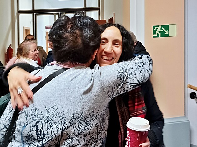 Ve středu projednával krajský soud v Českých Budějovicích případ ženy dezinformátora Ladislava Vrabela Bojany Vurdelji. K soudu je přišly podpořit desítky obdivovatelů. (8. ledna 2025)