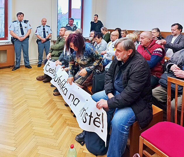 Ve středu projednával krajský soud v Českých Budějovicích případ ženy dezinformátora Ladislava Vrabela Bojany Vurdelji. K soudu je přišly podpořit desítky obdivovatelů. (8. ledna 2025)