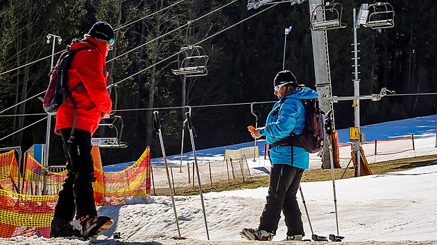 „Přes den se teploty i tady na Šumavě pohybují kolem deseti stupňů, ale po ránu byly sjezdovky v dobré kondici, pěkně přimrzlé. Navíc v neděli má přijít výrazné ochlazení, které vydrží i zkraje příštího týdne. Proto sezonu ještě nekončíme. Ve čtvrtek rozhodneme, jestli pojedeme i příští víkend,“ prohlásil vedoucí provozu zadovského areálu Petr Vondraš.