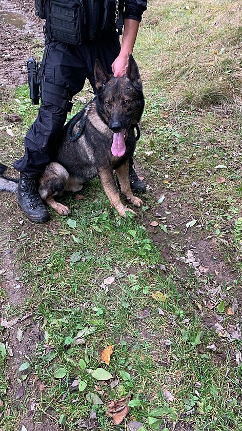 Pět migrantů, kteří utekli od auta, vypátral pod smrkem policejní pes Irok.