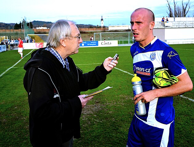 Míla Ortman s diktafonem dělá po zápasech rozhovory s hráči nebo trenéry.