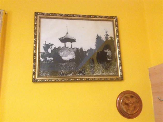 Dobová fotografie kladrubského draka visí v budově obecního úřadu.